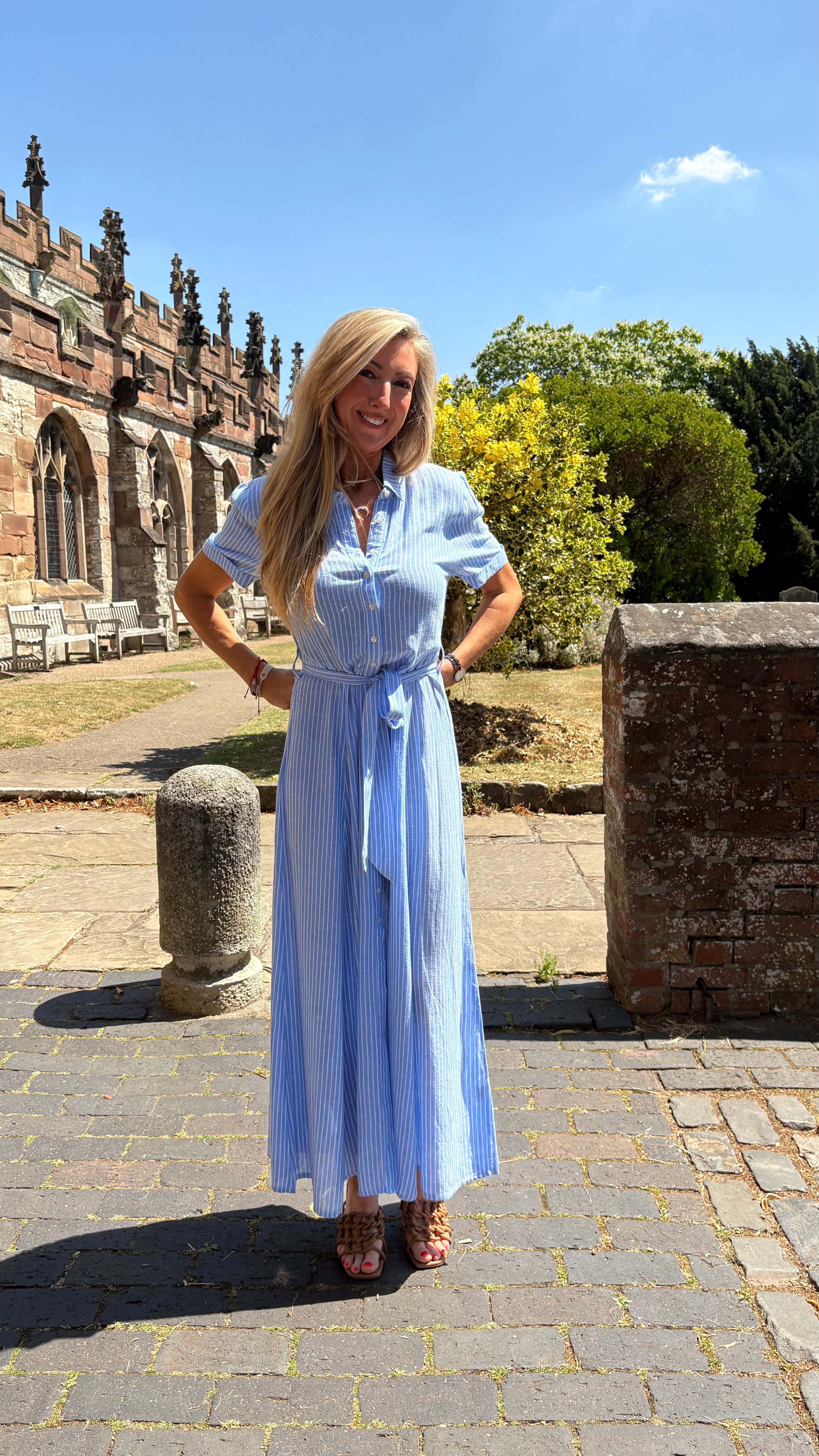 Eline Pinstripe Dress - Light Blue