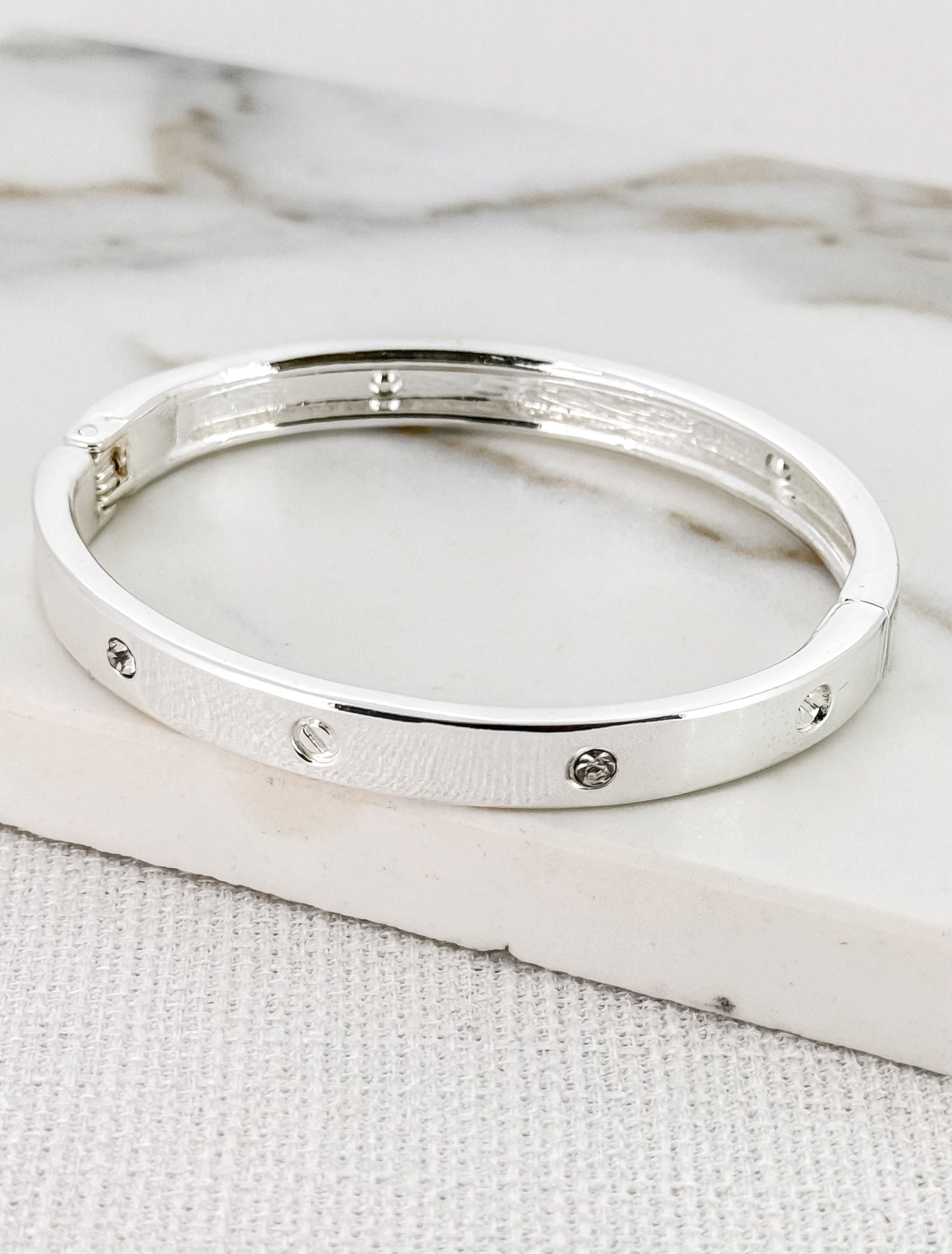 Diamanté Bangle - Silver